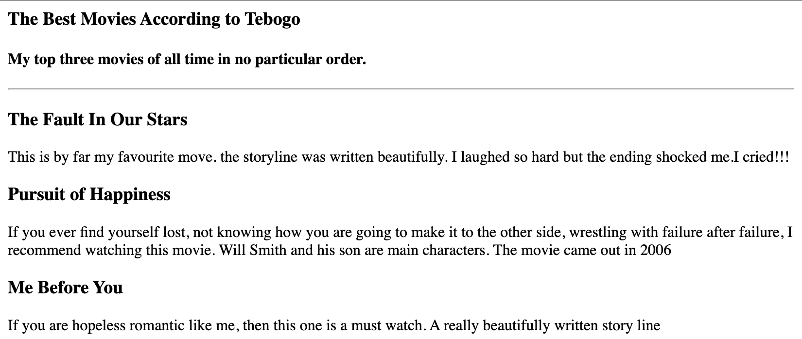 The Best Top Five Movies According to Tebogo